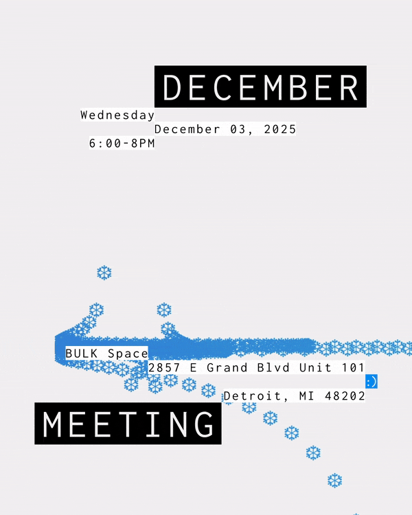 I founded and manage Creative Coding Detroit, a local meetup for artists and technologists exploring code-based creative work.